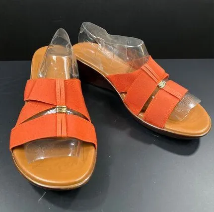 These Italian Shoemakers wedge sandals combine a sophisticated design with comfort. The elastic straps provide a secure fit, making them an ideal choice for leisurely strolls or casual outings. The wedge design offers a subtle lift, enhancing posture while ensuring stability with every step. SKU 7751 • Elastic straps • Wedge heel • Slip-on design • Made in Italy • Faux leather sole Slight scuff on sole; otherwise in good condition. Heel height approximately 2 inches. Size: Womens 11 Condition: Pre-Owned Good This item has been cleaned, sanitized and deodorized. Although we clean our items additional cleaning may be needed such as spot treatments, etc.