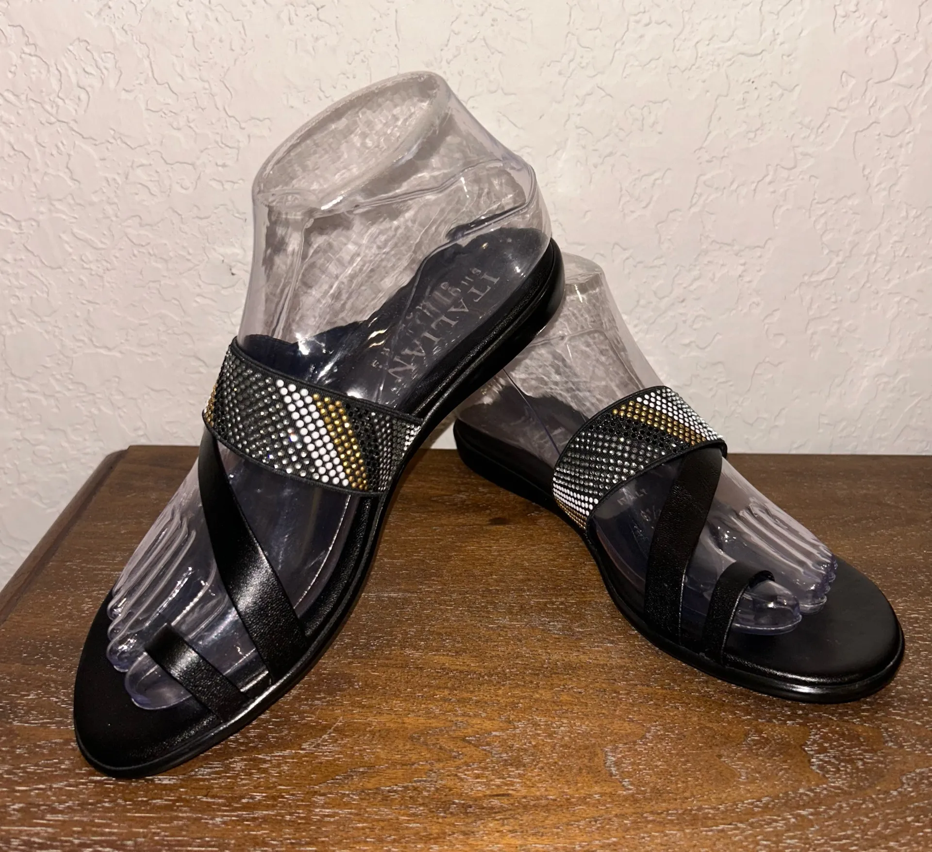 Italian Shoemakers Toe Ring Jeweled Embellished Sandal Shoes Size 6.5 Multiple - $18 - From SenShaytional