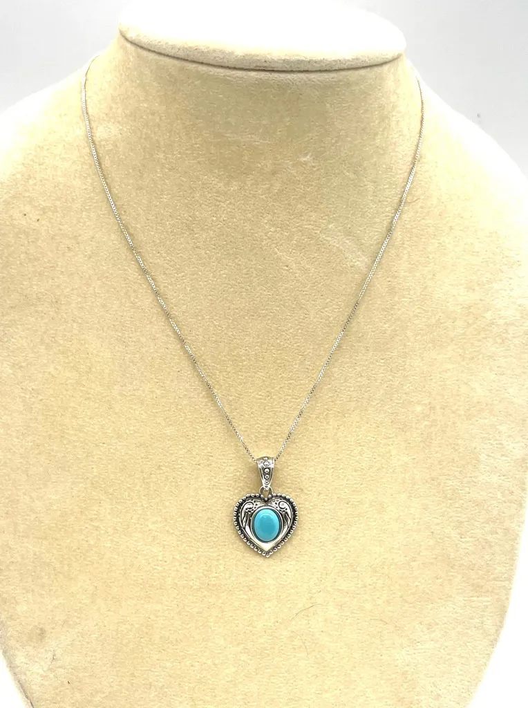 Italy 925 Sterling silver with Turquoise Heart Pendant Necklace Signed Italy SU - $90 - From Louella