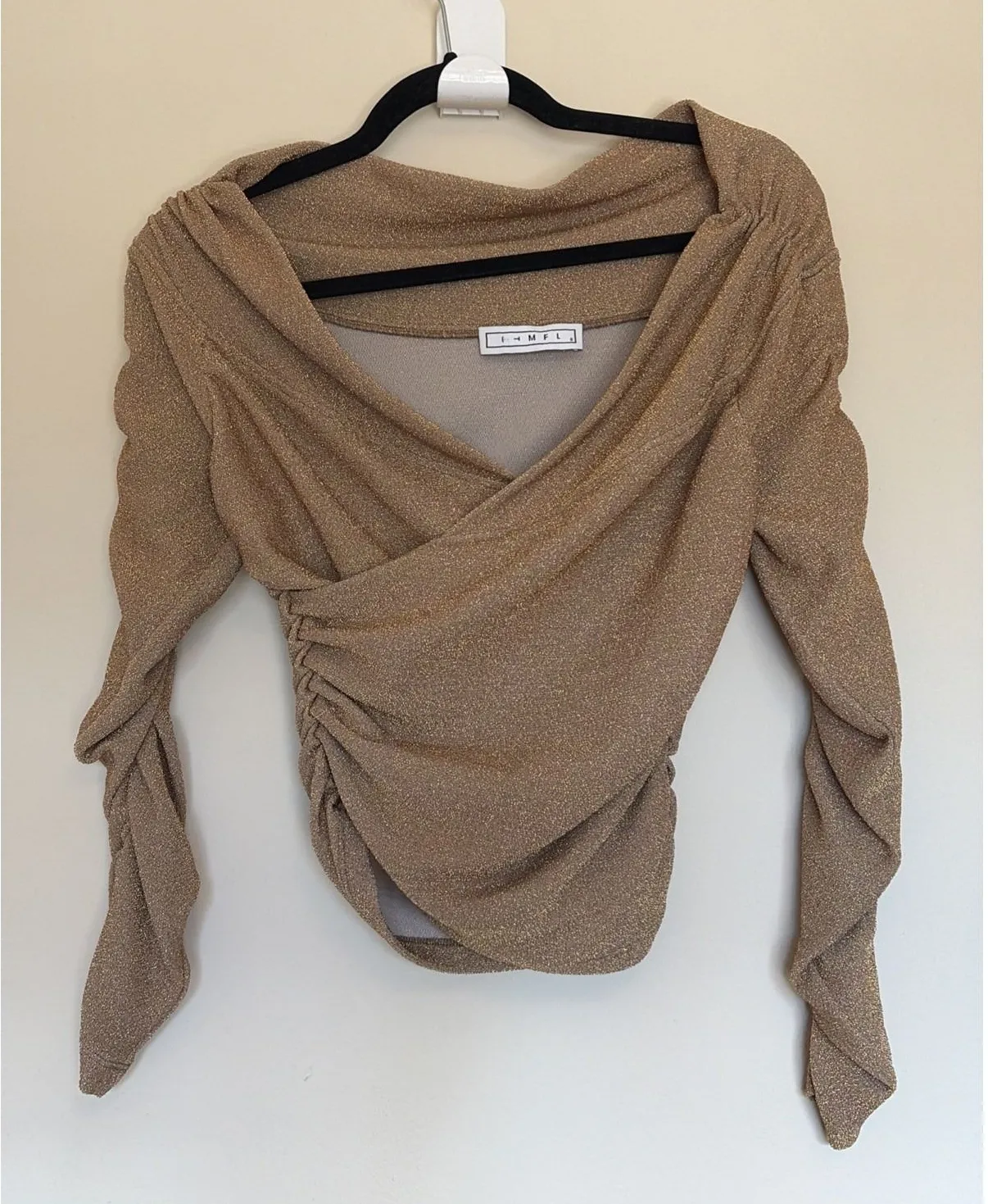 ITMFL Gold Sparkle Metallic Ruched Vneck Cropped Blouse Top Shirt Womens Small - $85 - From Hilary