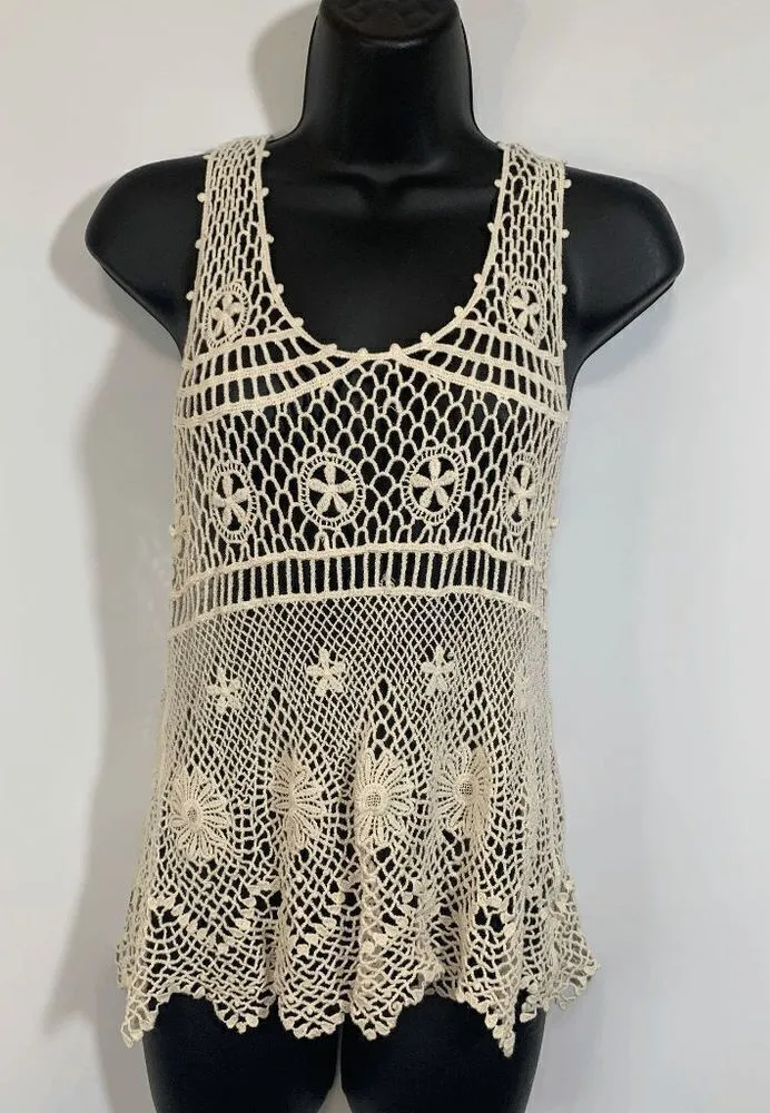 It's Our Time Womens Cream Crochet Flower Shirt Cover Up Small Get ready for the warmer months with this adorable Women's Cream Crochet Flower Shirt Cover Up from It's Our Time! Perfect for summer days at the beach or pool, this small-sized shirt cover up is the perfect way to stay breezy. Let your style stand out with this charming piece! Brand: It's Our Time Department: Women Size: Small Color: Cream Closure: Pull on Pattern: Cream Material: 100% Cotton Condition: Pre-owned, excellent Formal, Casual, Trendy, Travel, Relax See photos for measurement. Excellent preloved condition Please see pictures for all details.