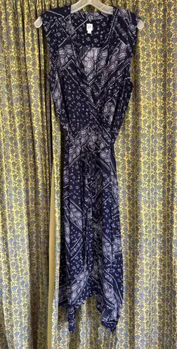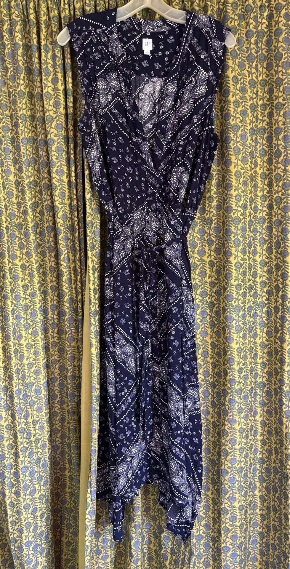 Gap Navy blue and white paisley print midi dress with a tie-up front and wrap design woman's size L... Show more