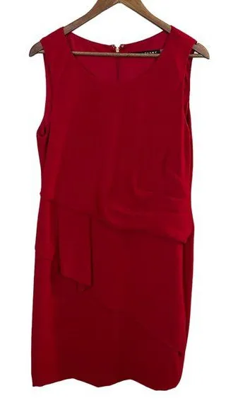 Very good condition! No rips, tears, holes or stains. Features: Partial back zip Flattering pleat detail on waist Layered ruffle accent Center back slit 100% polyester - dry clean underarm to underarm: 19.5 in waist (laying flat): 17.25 in length (shoulder to hem): 38 in