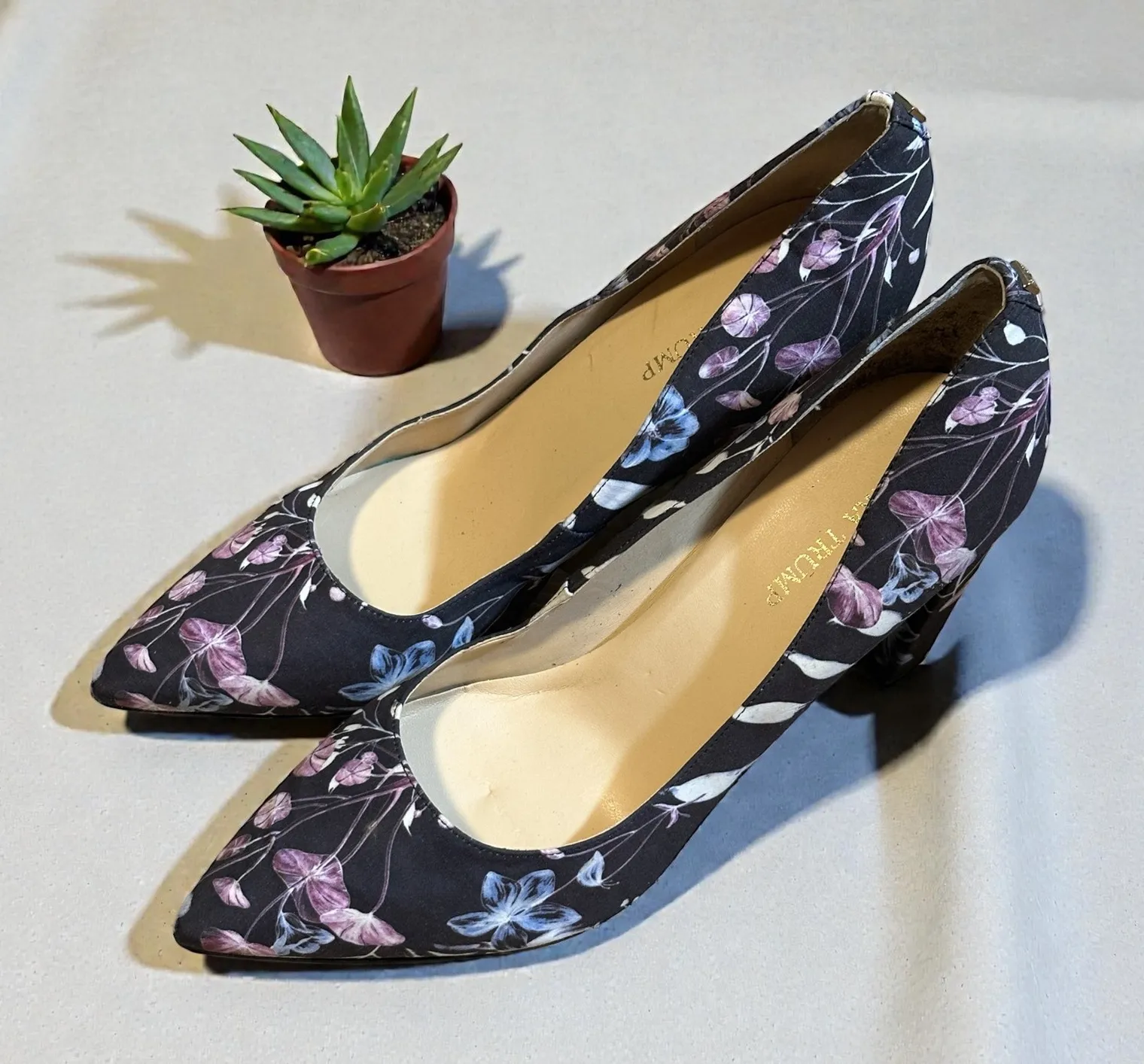 Measurements: • Heel Height: 4 in Style: Pump Department: Women Upper Material: Synthetic Heel Style: Block Type: Heel Theme: Flower Toe Shape: Pointed Toe Pattern: Floral Closure: Slip On Insole Material: Fabric Outsole Material: Synthetic Lining Material: Fabric Shoe Width: Standard Keywords: ivanka trump shoes, floral heels, pointed toe, block heel, women's pumps, dress shoes, office wear, elegant, fashionable, size 7, printed shoes, feminine, evening wear This item is in good preowned condition. It comes from a non-smoking, pet-free home. • Kindly review all photos carefully before purchasing. • Quick Shipping ! Same or Next Day! • Fabric tags shown in photos If still attached • All measurements are take unstretched and are APPROXIMATE