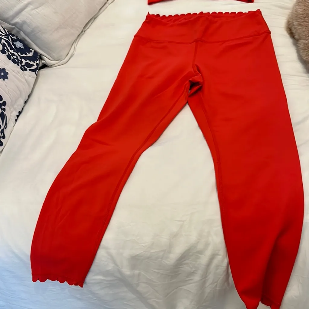 IVL Collective scalloped red leggings (10) and sports bra (8)set. No flaws - $95 - From Jessica