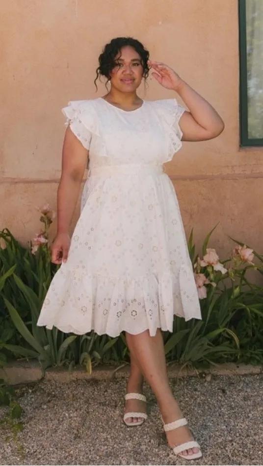Ivy City Clary Dress in Cream Eyelet Pretty Cream Dress With Eyelet Detail And Ruffled Sleeves. Op... Show more