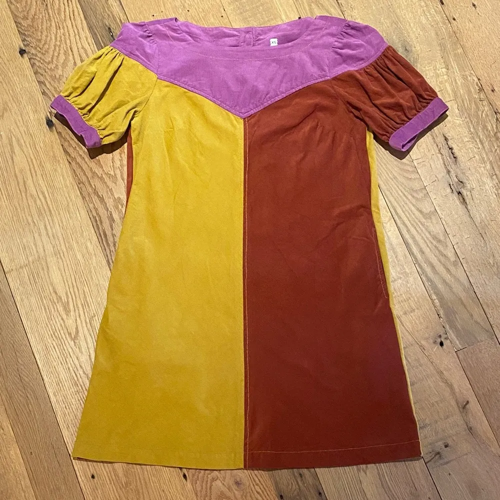 Ivy Jane Soft Corduroy Color Block Puff Sleeve Mini Dress Size XS Gold - $57 - From Lysander