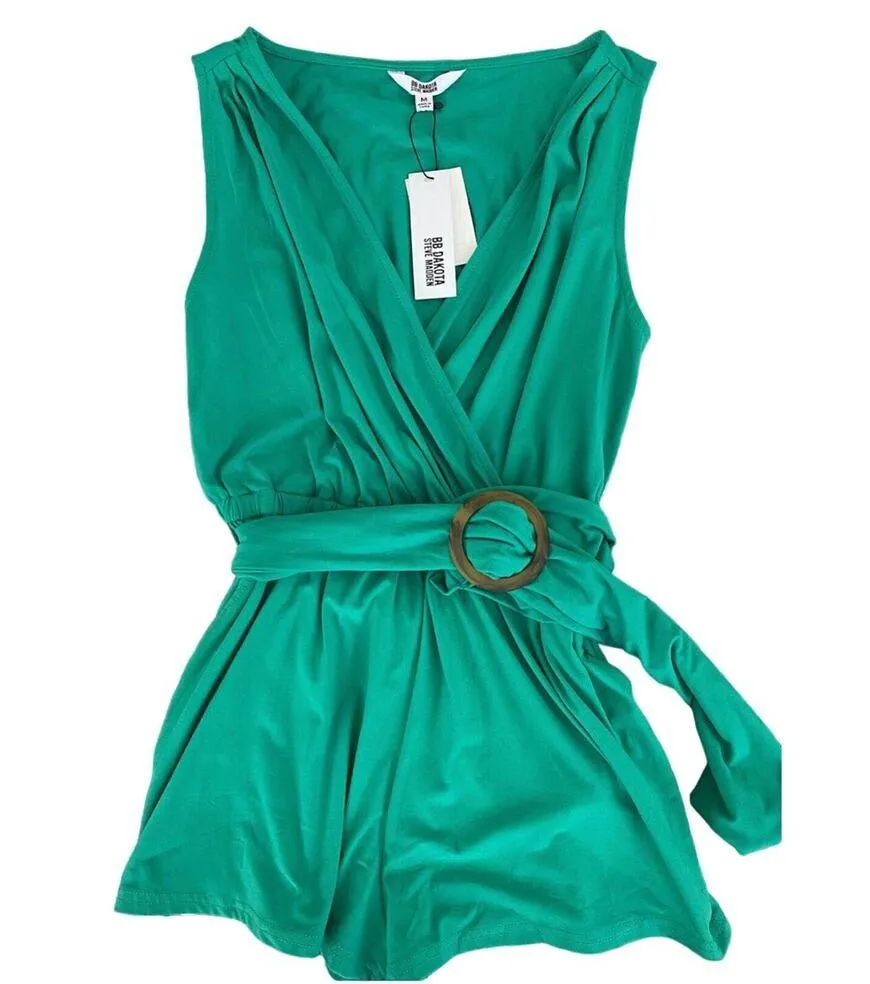 BB Dakota By Steve Madden Romper Size Medium Valleri Sleeveless Deep Green with tie belt This item... Show more