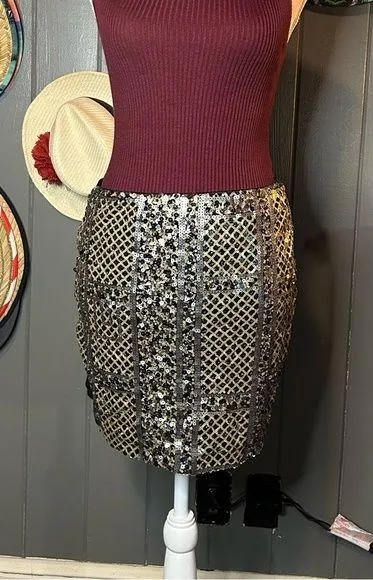 Fun sequin skirt! Lined. Made in China. Sequins do not carry around the back. Zipper in back. Black/... Show more