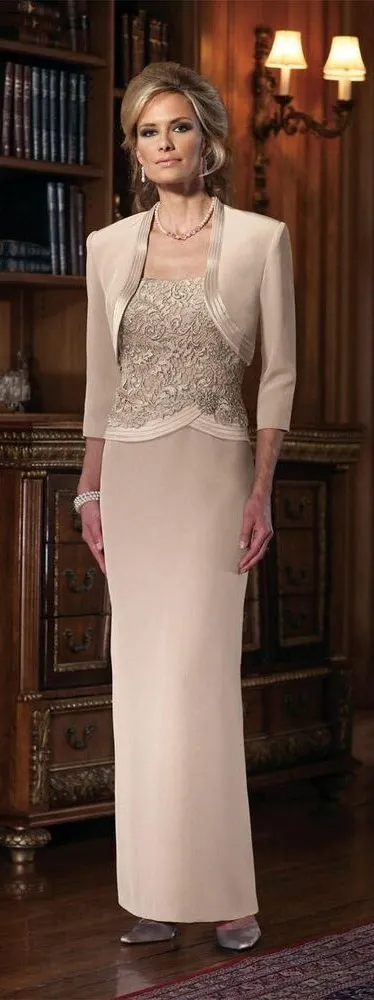 ✨Izilady TS Sheath Mother of the Bride Dress Size: 14 Color: Cream [Fabric]: Crafted from luxurious chiffon, lace, and satin, this dress offers an elegant sheen and smooth texture. The combination of fabrics ensures a comfortable and graceful fit, making it perfect for formal occasions. [Silhouette]: Featuring a sheath/column silhouette, this gown highlights a long, slim design that enhances grace and poise. The floor-length hemline adds a classic touch to the ensemble, making it suitable for those who seek a timeless look. [Design Highlights]: The attire is adorned with handmade appliques and a delicate sash/ribbon, adding a unique and sophisticated embellishment. The ensemble includes a straight neckline and is complemented by a tailored short jacket with a subtle satin sheen, which provides an extra layer of refinement and modesty. Occasion Wedding Guest Style Elegant , Plus Size Silhouette Sheath / Column Hemline / Train Floor Length Neckline Straight Neckline Fabric Chiffon , Lace , Satin Retails: $302 BIN 45✨