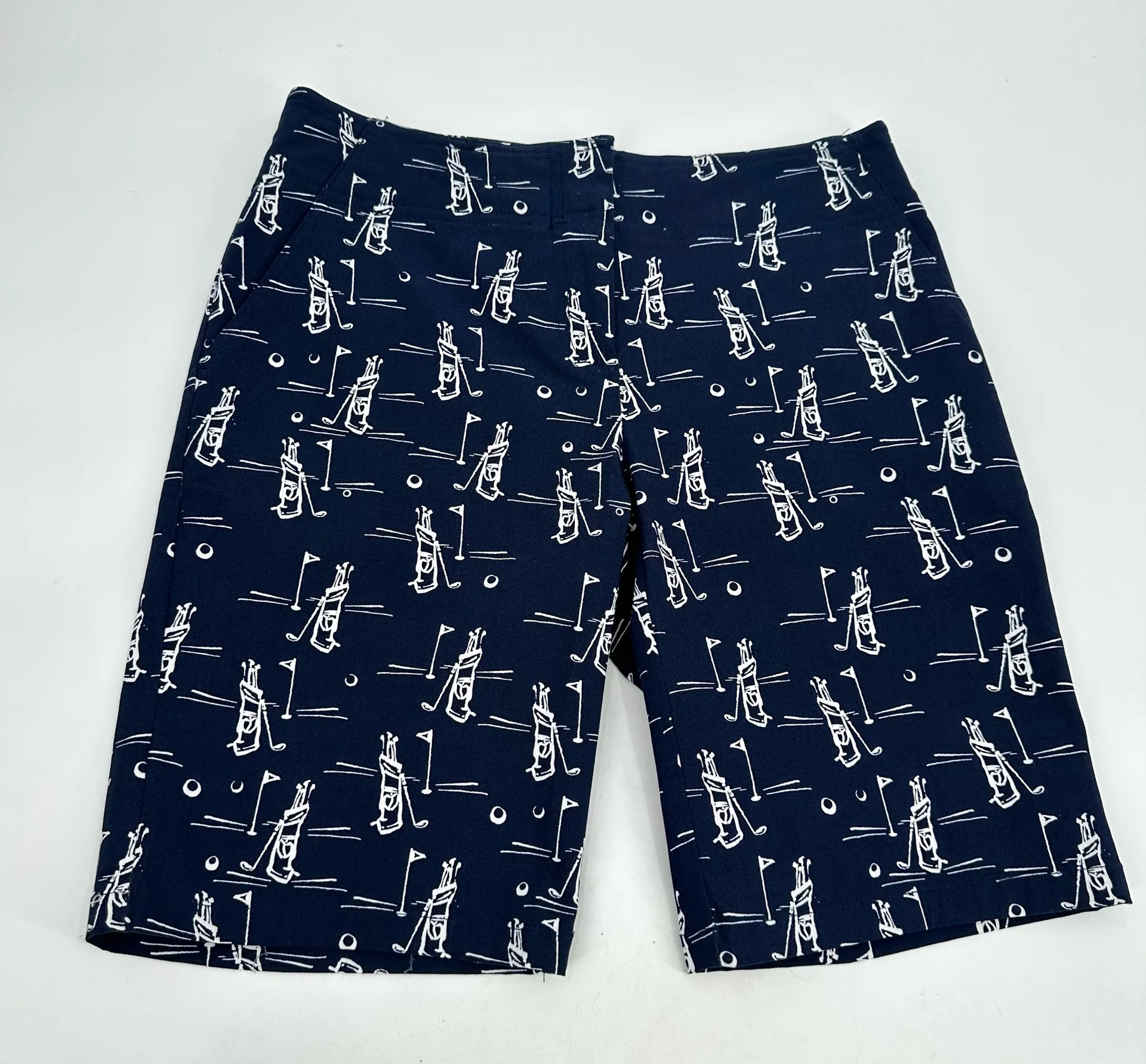 IZOD GOLF Shorts Women’s 4 Dark Blue Golf Bag Print Classic Preppy Vacation Dark blue golf shorts h... Show more