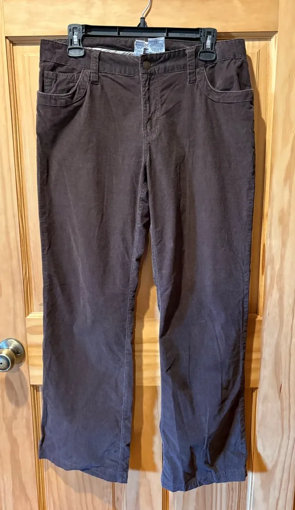 These Izod Women's Brown Straight Leg Corduroy Pants Mid-Rise Stretch Casual Classic feature a zip and button closure, belt loops, and front and back pockets. Flat front design with standard pockets. Comfortable brown corduroy pants, ideal for everyday wear. GUC = Good Used Condition. See photos for approximate measurements to ensure an accurate fit. Thanks for looking! 5/NB