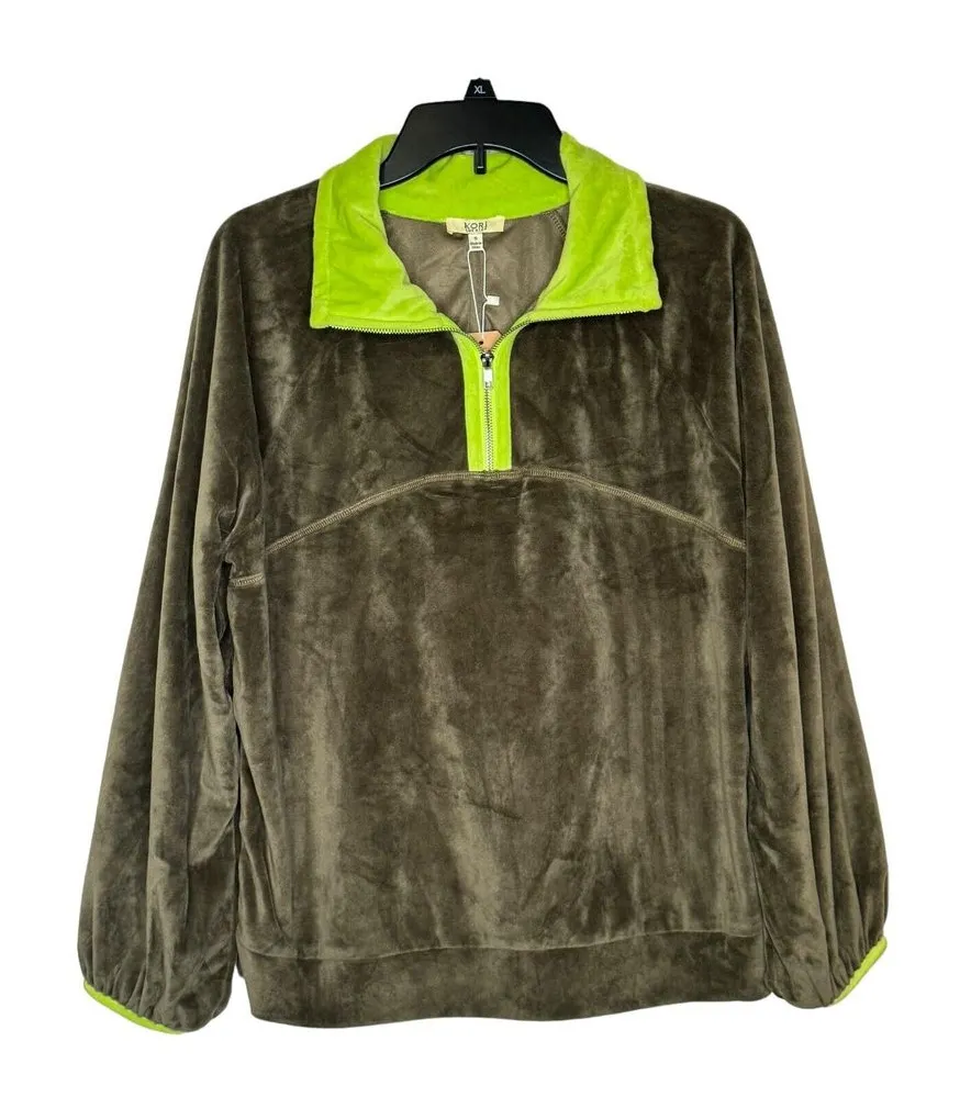 Brand- Kori America Material- 100% Polyester Size- Small Color- Green Measurements: Armpit to armpit- Under the arm measurement- 22" Shoulder to shoulder- Shoulder seam to shoulder seam- 20" Length- From bottom of collar to the end of the shirt- 23.5" Sleeves- From shoulder seam to end of cuff- 22" Condition: New with tags. See Photos. Thank you for Shopping. Feel free to check out my listings for various preloved items.