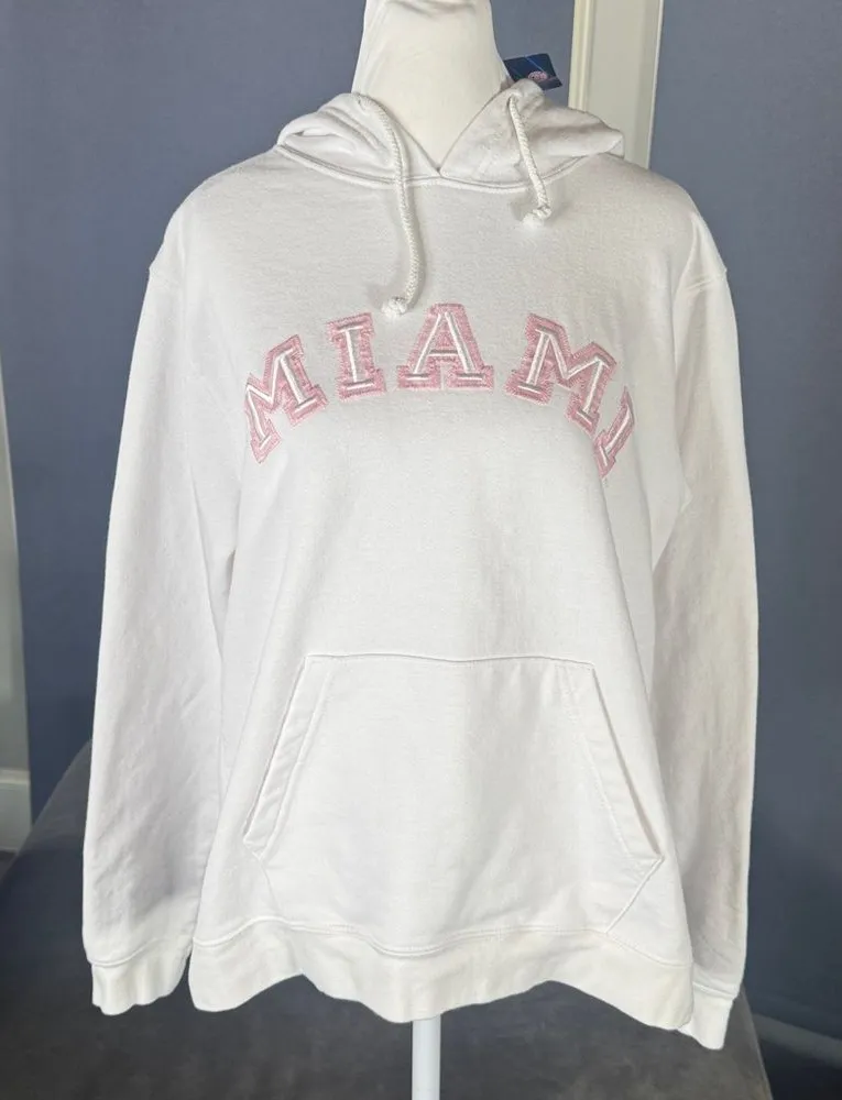 Women’s Miami White Hoodie University of Miami Officially Licensed Collegiate Product Size: L - pl... Show more