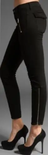 Good pre owned condition no rips or stains. Mid rise black skinny pants with zipper front pockets an... Show more