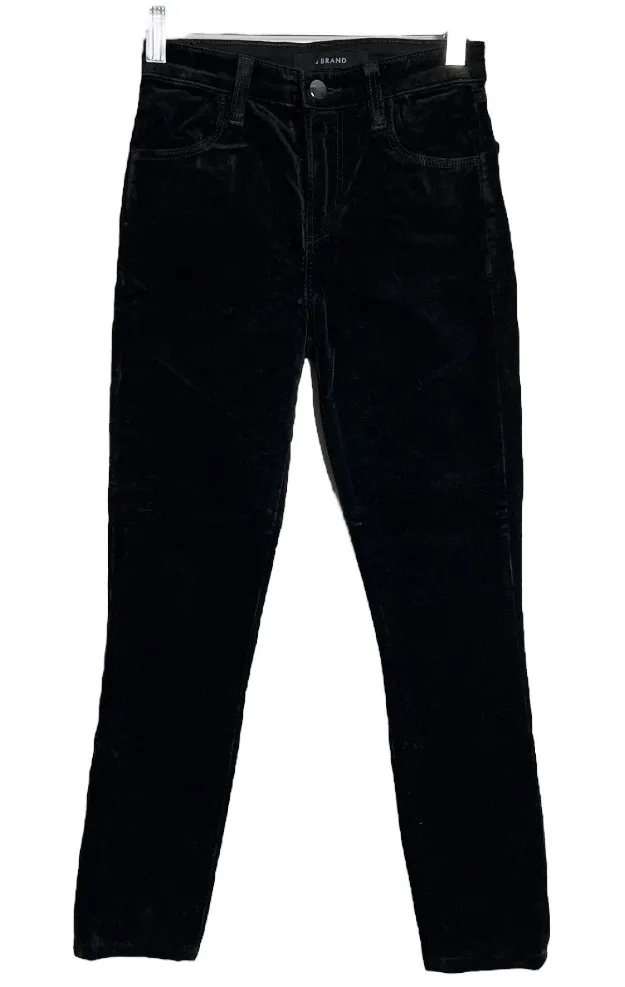 J Brand Maria Jeans Black Velvet Mid Rise Skinny Leg Solid Wash 4 Pocket Design Zip Fly Button Closu... Show more