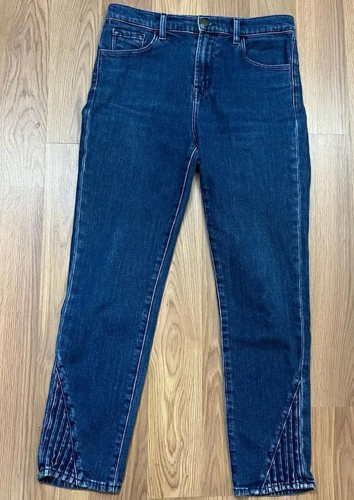 Medium wash stretch skinny jeans from J Brand Higher waist Moto style detail at ankles Very good con... Show more