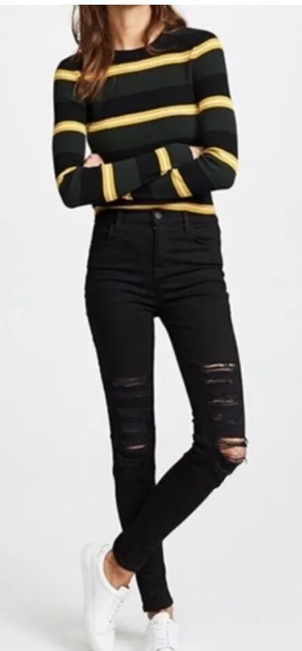Brand: J Brand Description: Maria mid rise distressed knee skinny jeans Size: 25 Color: black hea... Show more
