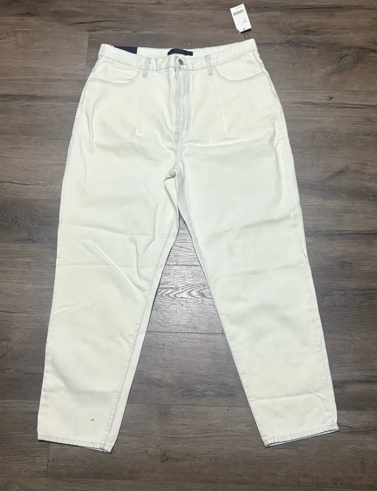 J Brand Pleated Peg jeans in a crisp white “Vanish” wash. High-rise fit with a flattering pleated fr... Show more