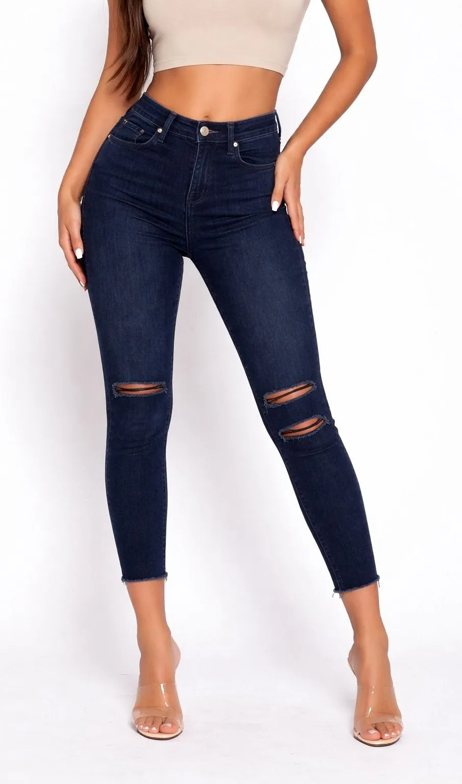 J Brand Skinny Jeans Women's Black Distressed Ripped High Rise Raw Hem - great condition, see all pi... Show more