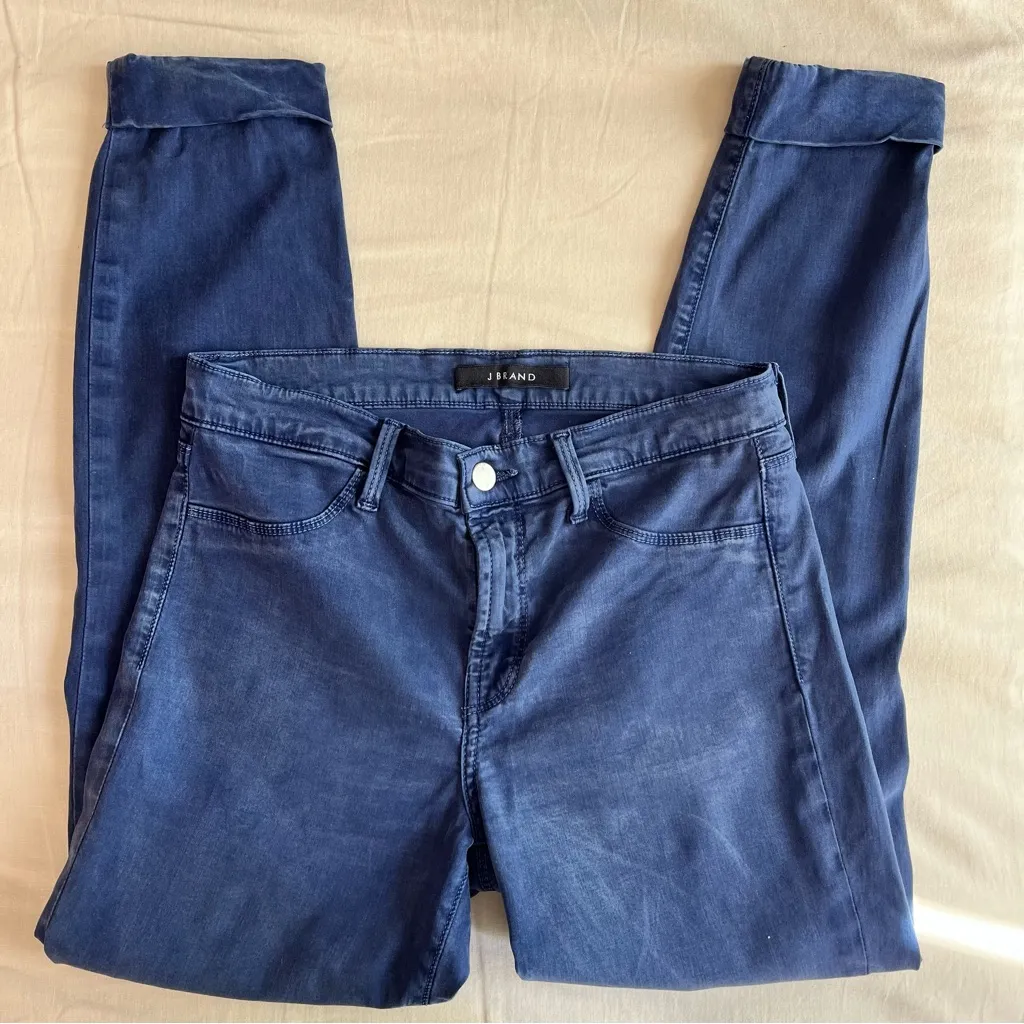 J Brand •Super Skinny Indigo Eclipse •Sz 28 •button/ zip front •pre-roll cuffs •faux front... Show more