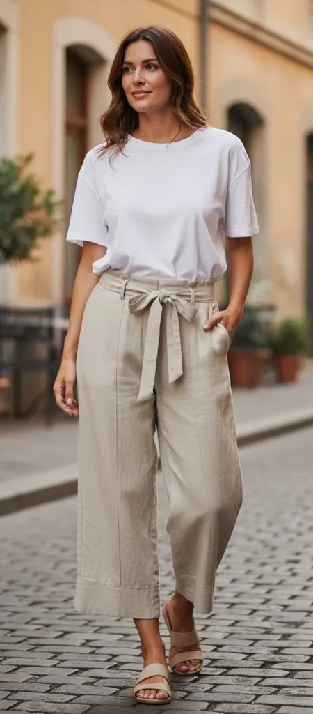 J by Joie Cream Belted Linen Blend Wide-Leg Pants Size: L New without tags Note: Model image is... Show more