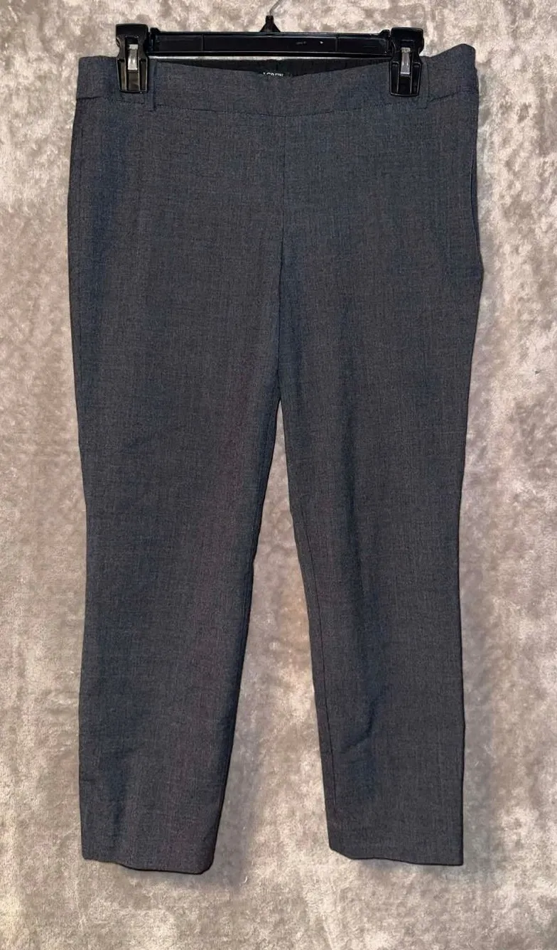 Waist flat 15” Rise 8” Inseam 25” Upgrade your wardrobe with this timeless pair of J.Crew City Fit Stretch Trousers in a classic medium-gray shade. These pants are crafted from a soft wool-blend fabric with a touch of stretch for comfort and ease of movement. Designed in a cropped length, they offer a polished, modern silhouette perfect for work, business casual outfits, or elevated everyday style. Cropped ankle length for a clean, tailored look City Fit — a mid-rise, straight-through-the-hip cut Wool-blend stretch fabric for comfort Back welt pockets (decorative) Classic zip fly with hook/eye closure Condition: Pre-owned and in great condition with no major flaws noted. Perfect for pairing with blouses, sweaters, or blazers for a chic, versatile outfit. J.Crew, City Fit, stretch trousers, wool blend pants, cropped dress pants, ankle trousers, gray slacks, business casual, office wear, work pants, tailored trousers, minimalist wardrobe, classic style, careerwear