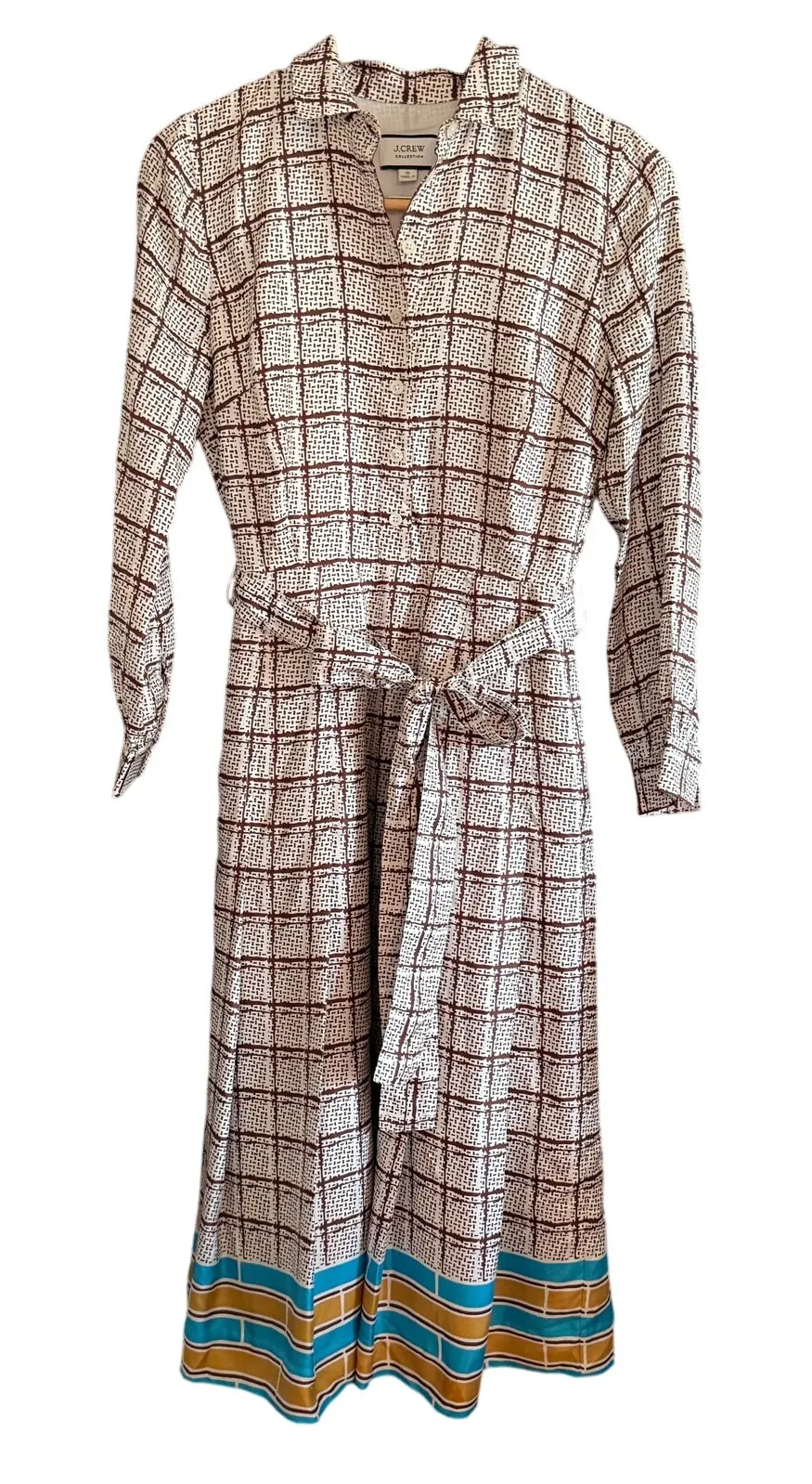 J. Crew | Silk Twill Pleated Brown Plaid Midi Shirt Dress Silk Twill body Fully lined Midi Length... Show more