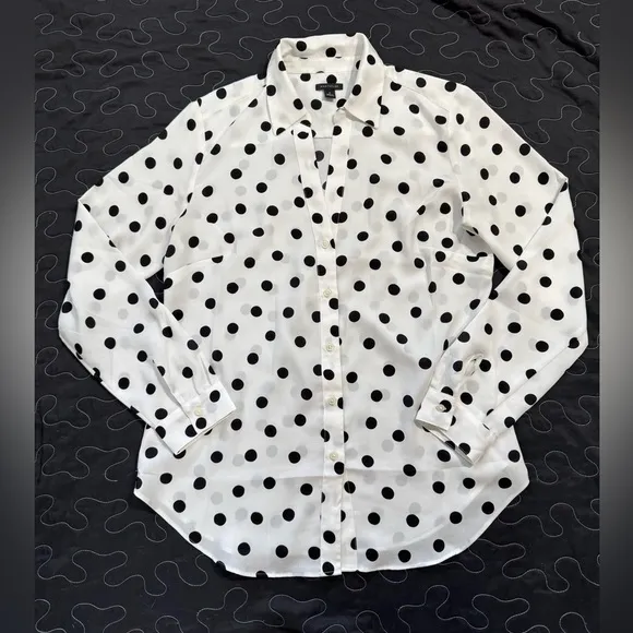 J. Crew Factory Jacquard Dot Pop-over shirt. Size: Medium Ivory Cream & Black White - $27 - From Jessie