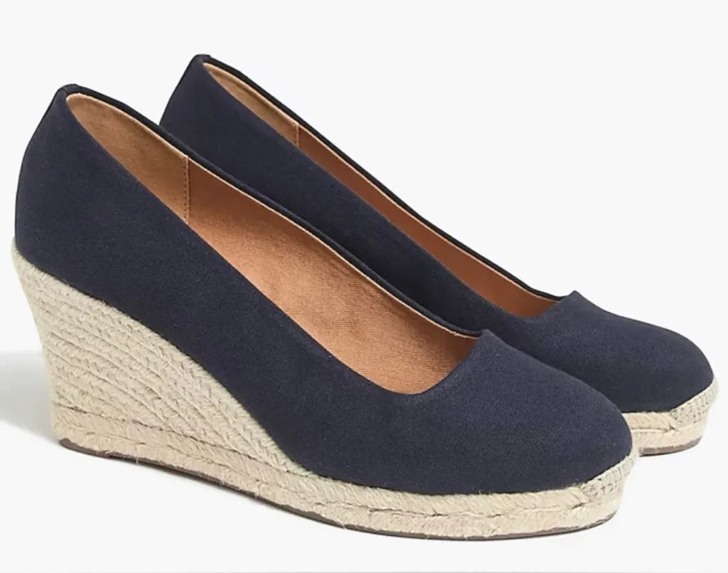 J. Crew Factory Navy Blue Canvas Espadrille Jute Wedges NWOT ~ canvas upper ~ cushioned footbed ~... Show more