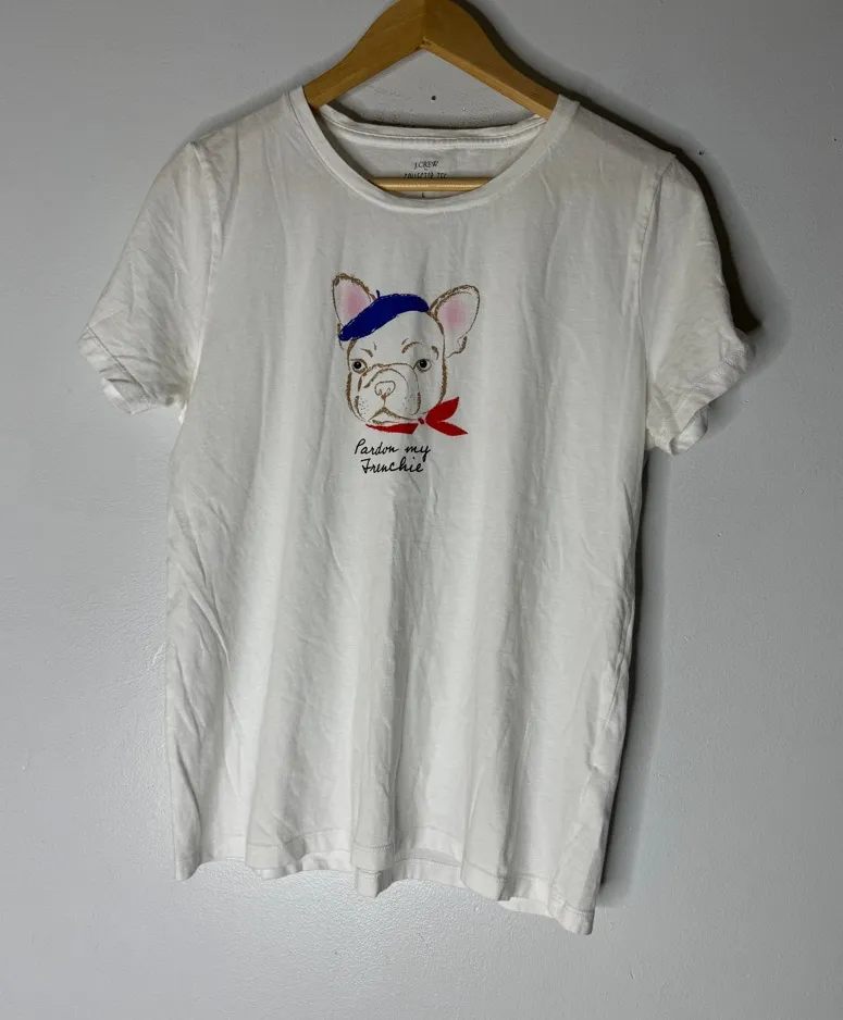 J.‎ Crew Factory Women's "Pardon My Frenchie" Collector’s T Shirt Large CP White - $32 - From Crystal