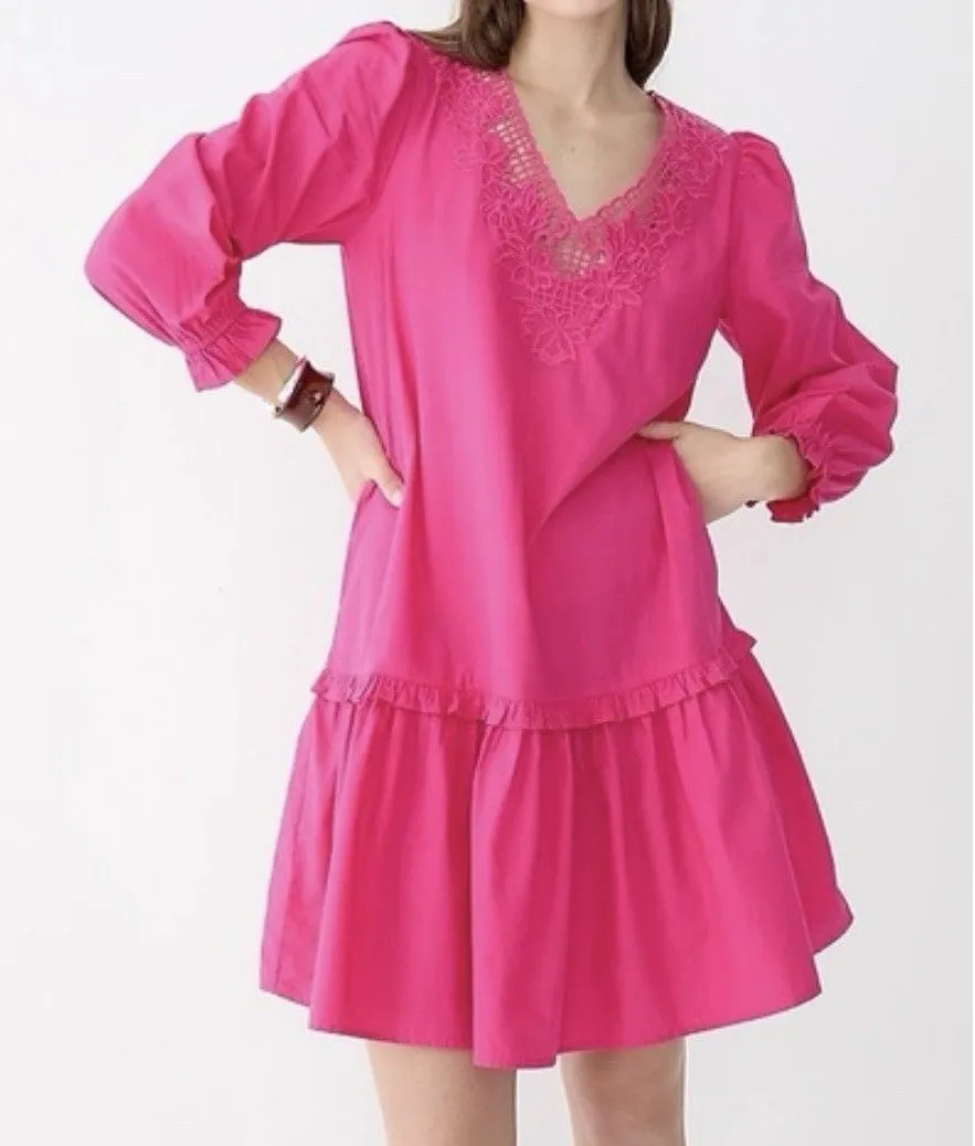 J. Crew Hot Pink NWT V-Neck Mini Dress with Eyelet Trim Size XS - $22 - From Julie