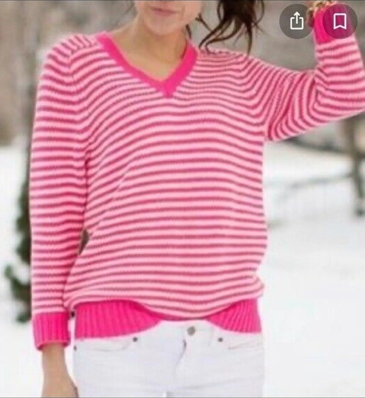 J. Crew‎ hot pink White striped sweater Women’s Size XXS V-neck - $21 - From Diana