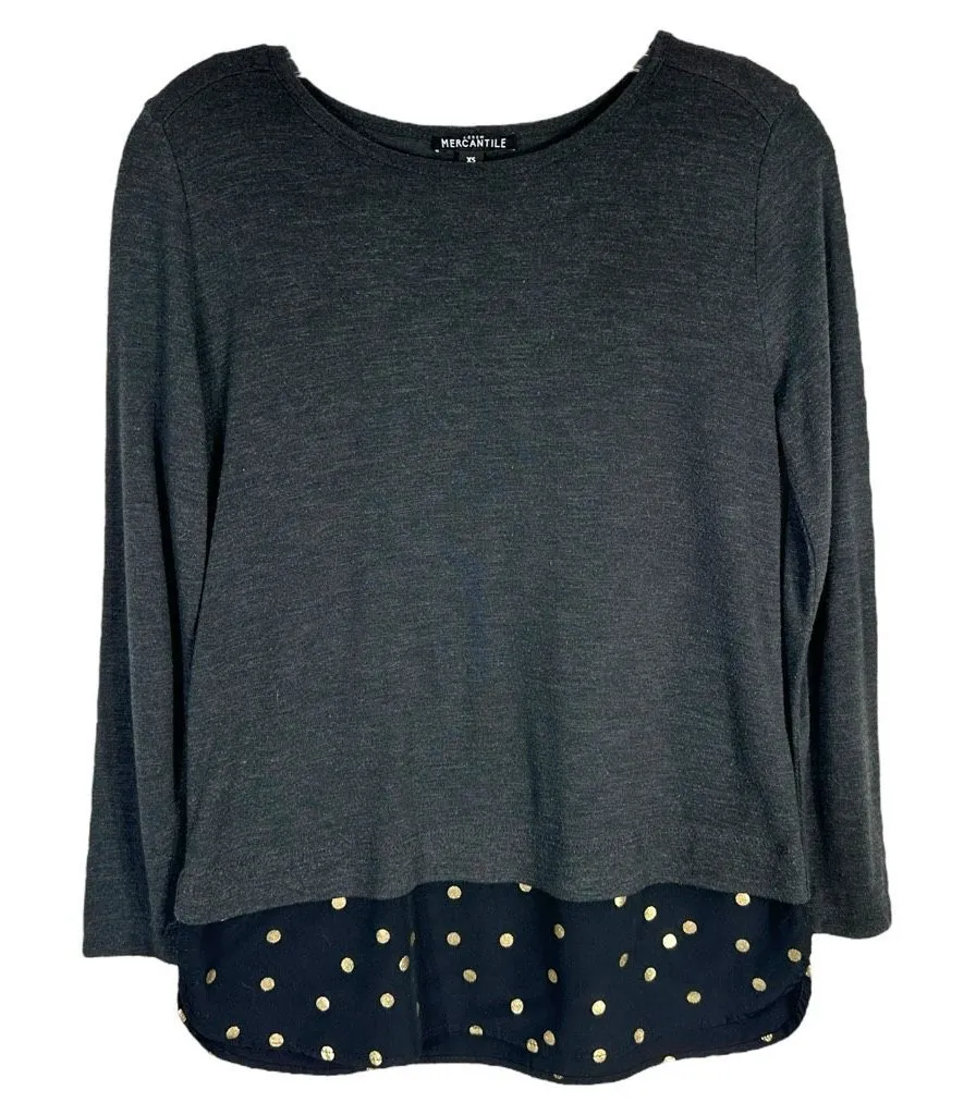 J Crew Mercantile XS Top Faux Layer Gold Polka Dot Gray Knit Sweater Prep 104 Chest: 19” across Len... Show more