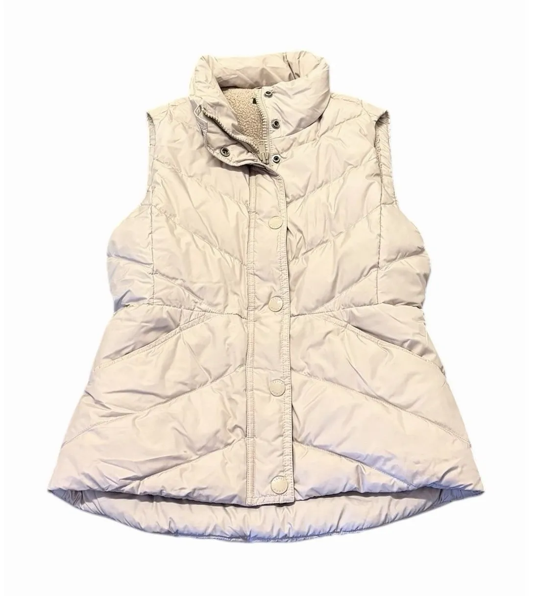 The J Crew Puffer Vest for women in XS size is a stylish and practical outerwear option for staying warm during the colder seasons. Made with a polyester outer shell and insulated with down feathers, this beige vest is perfect for casual or travel occasions. It features a quilted design, button and zip closures, and pockets for added functionality. Easy to care for with machine washable instructions, this vest offers a classic and preppy look for outdoor activities in winter, fall, or spring. Great preowned condition. Will ship quickly!