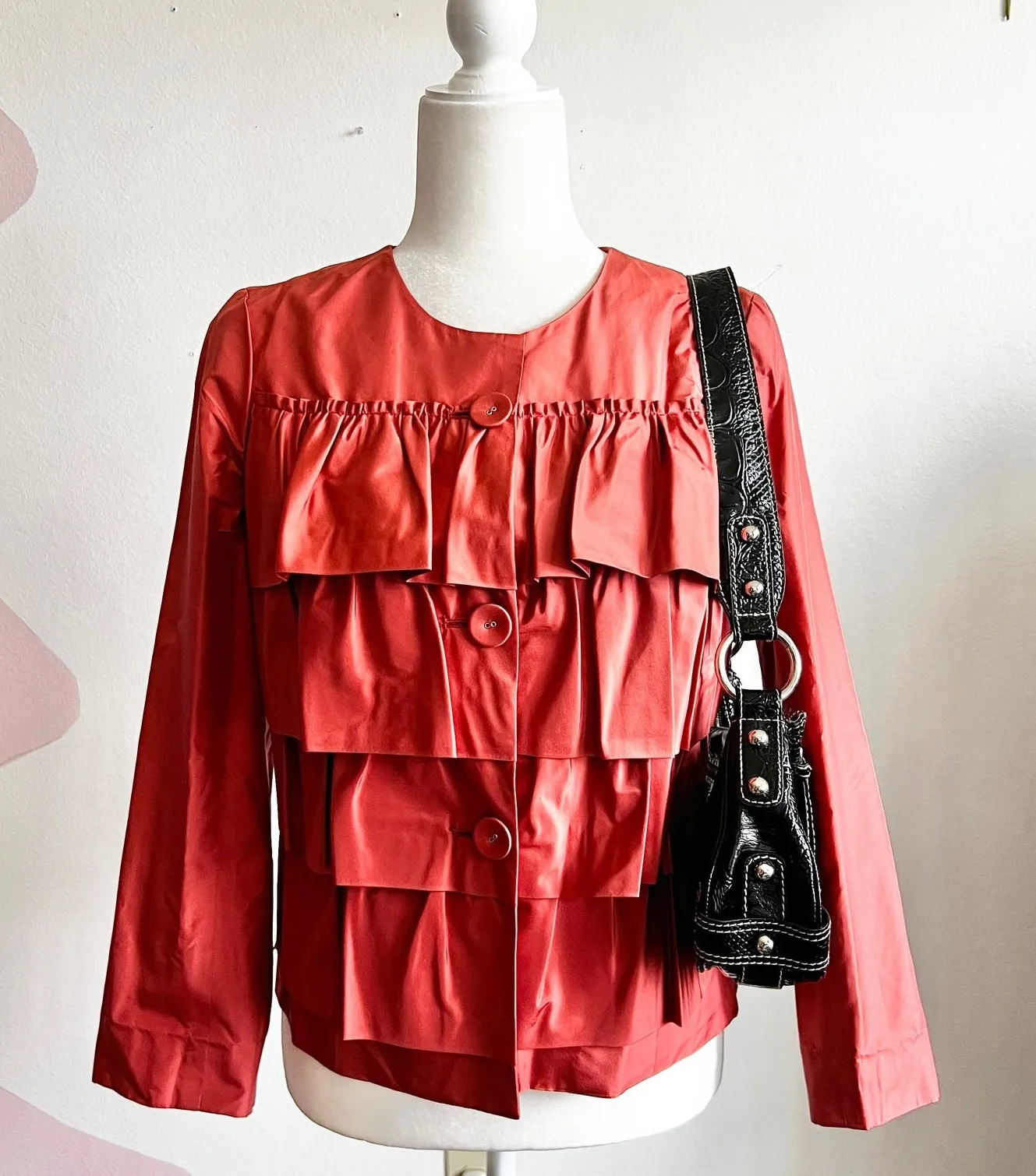 J Crew Ruffle Jacket 100% Silk Classic Luxury Minimalism Timeless Workwear Sz 2 Orange - $30 - From Kenia