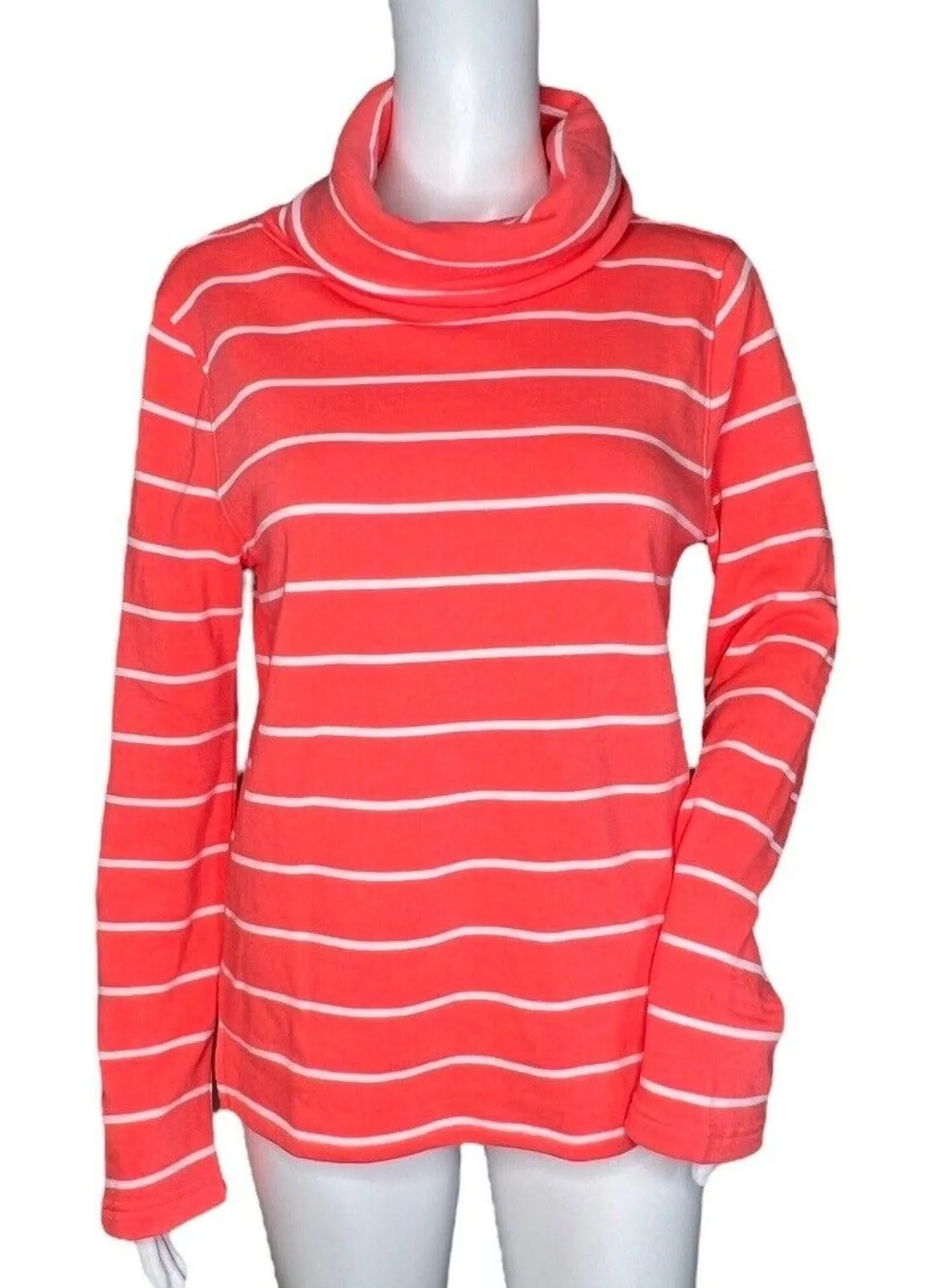 J. Crew Sweatshirt Womens Small Coral White Striped Mockneck Casual Comfy Cozy Women's Size Small... Show more