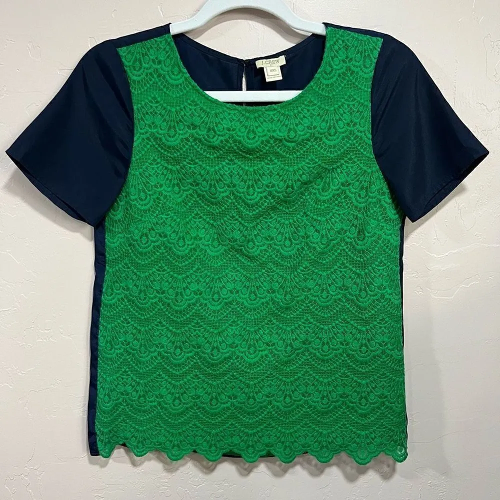 J. Crew sz XXS Kelly green and navy color block lace shirt Blue - $30 - From Tessa