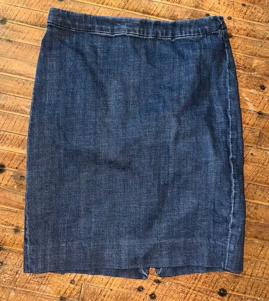 J Crew business casual, denim, stretchy, minimalist, classic pencil skirt. Pairs well with a shell a... Show more
