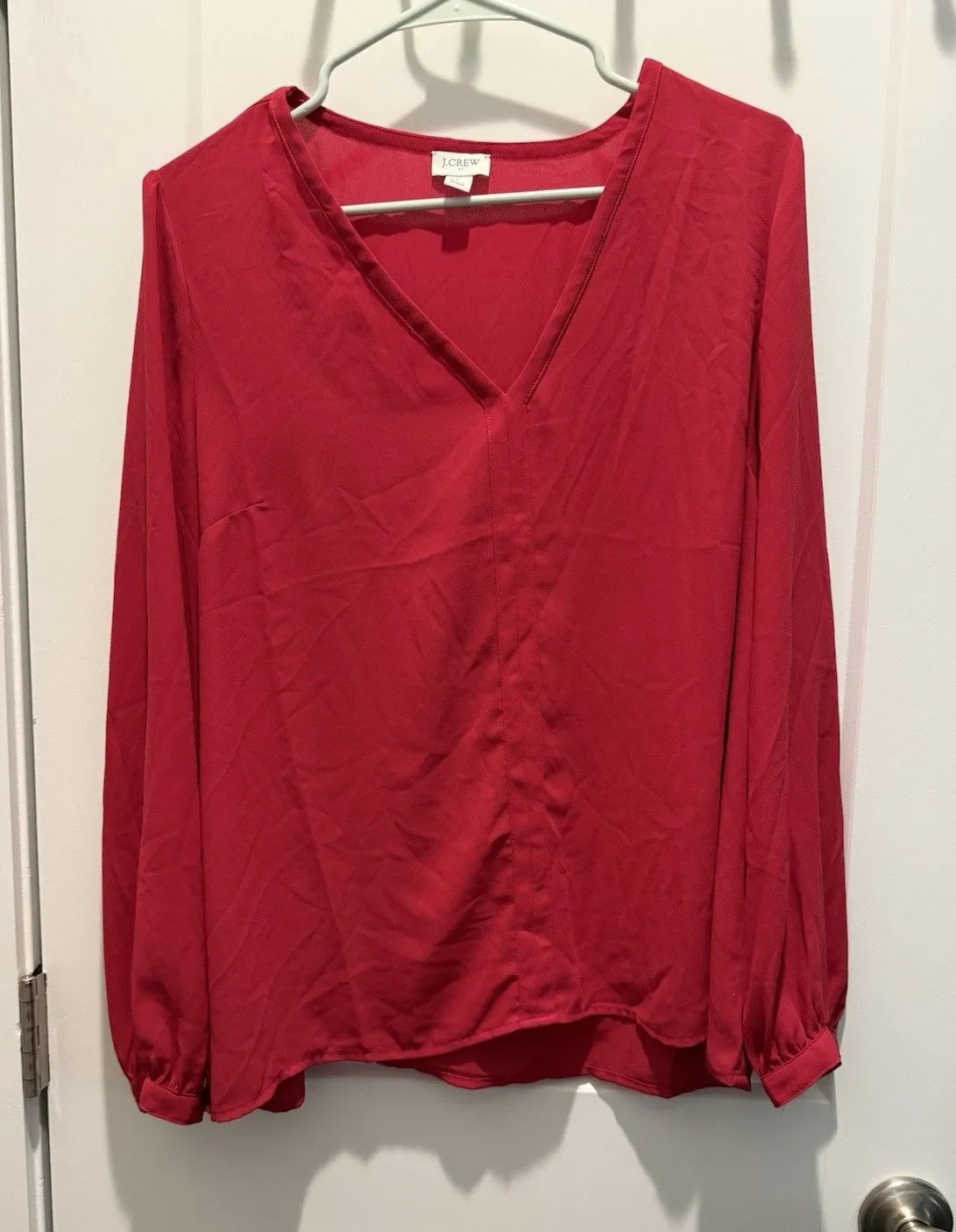 This J Crew women's top is a hot pink V-neck tunic with balloon sleeves, perfect for a casual, boho... Show more