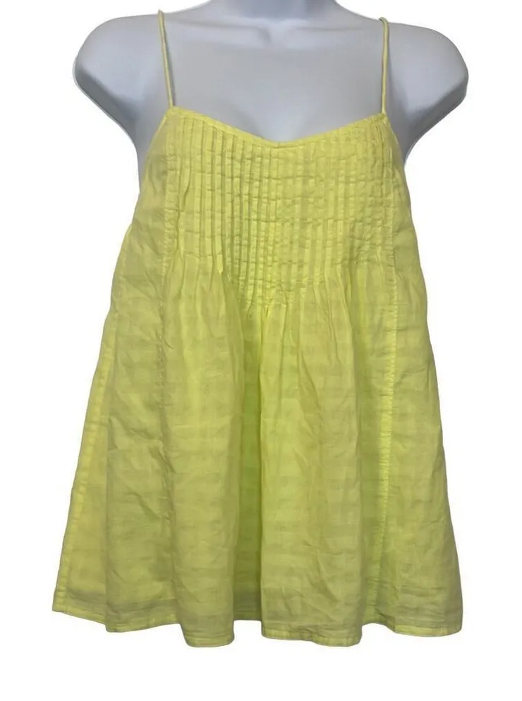 J. Crew NWT New Yellow Pintuck Flowy Tank Top Sz 0 Boho Beach Preppy -Spaghetti strap oversize Flo... Show more