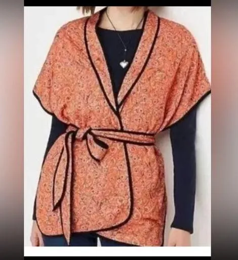 J Jill Belted Quilted Ruana Orange Paisley Belted Jacket Kimono. One Size. S-L - $29 - From Pam