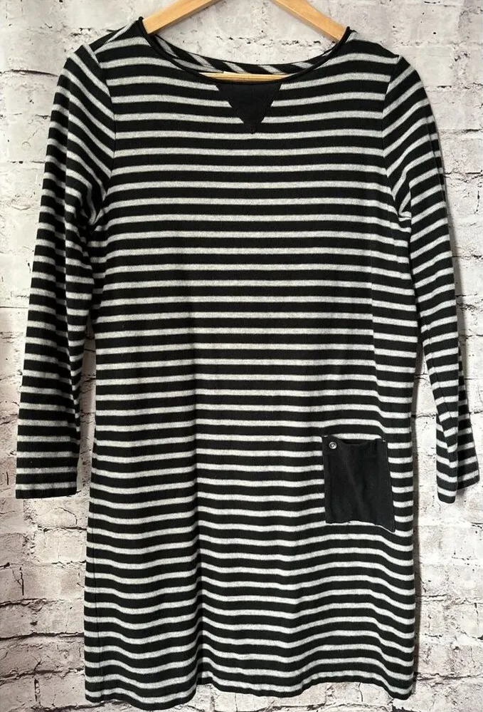 J. Jill Women's Long Sleeve T-Shirt Dress Black/Grey Stripes Size M Chest: 19" Length: 31" 100% Cott... Show more