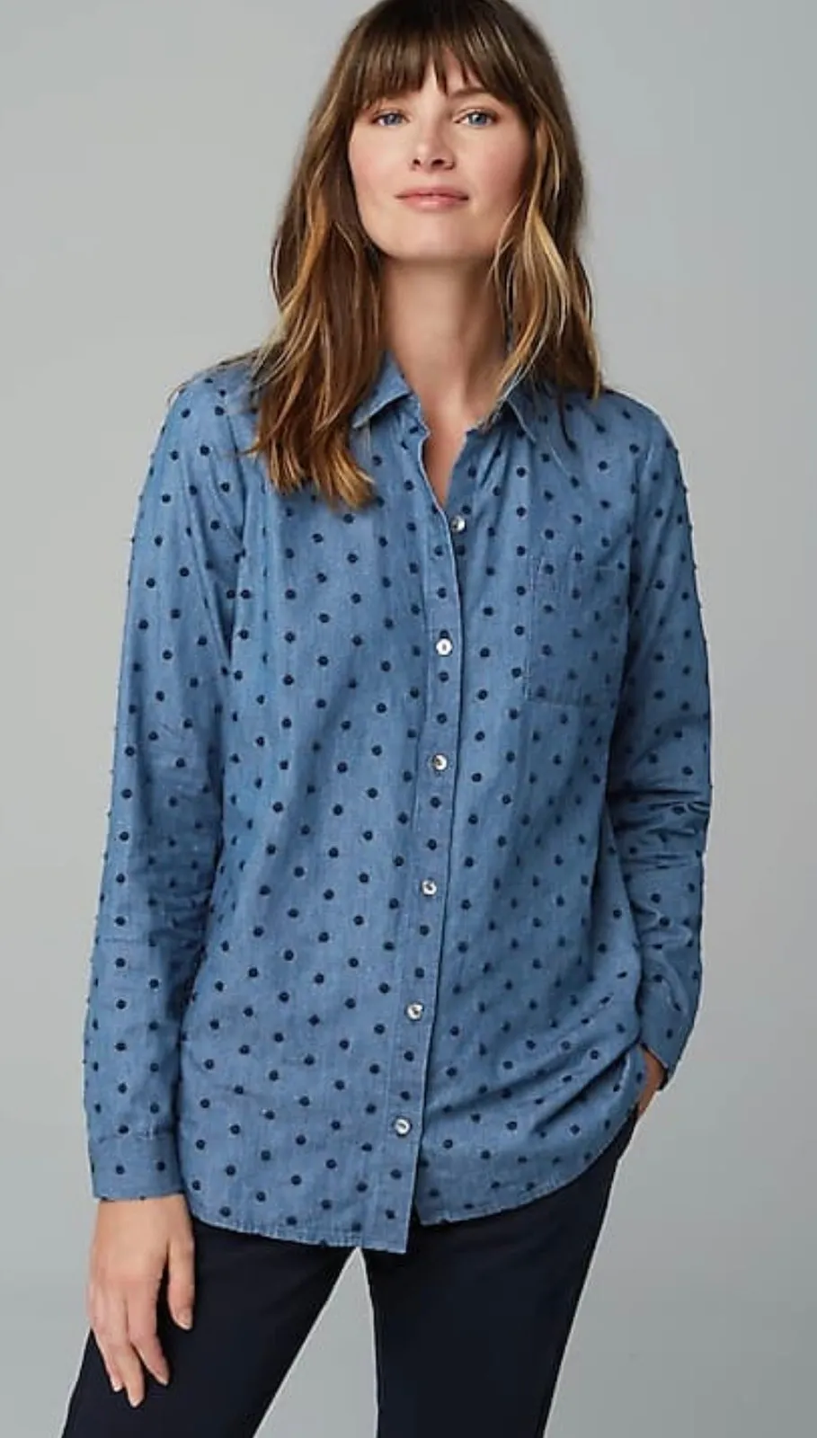 Great Pre-Owned Condition (see pics for details) Size: XS Fabric Content: 100% Cotton Washing Instructions: Machine wash cold Flaws: No visible flaws. Measurements: included in photos Classic, Classy, Embroidered, Polka Dot, Casual, Office, Career, Neutral, Minimalist Fast shipping: Shipped out next business day! Please let us know if you have any questions! 2498 B39