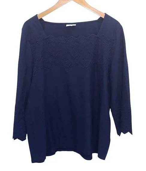 Description: J. Jill Eyelet Tunic Blouse Top Bell Sleeves Square Neck Navy Cotton Size XL Conditio... Show more