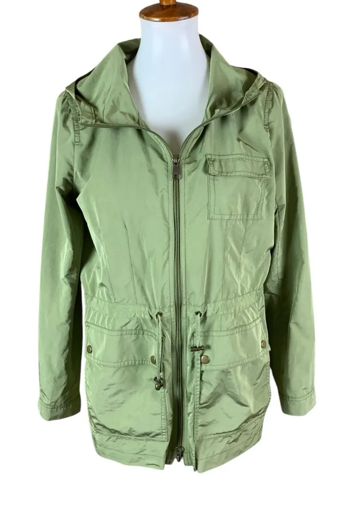 J Jill Green Utility Jacket Hooded Zip Up Drawstring Waist Lightweight Casual XS - $28 - From Rodica