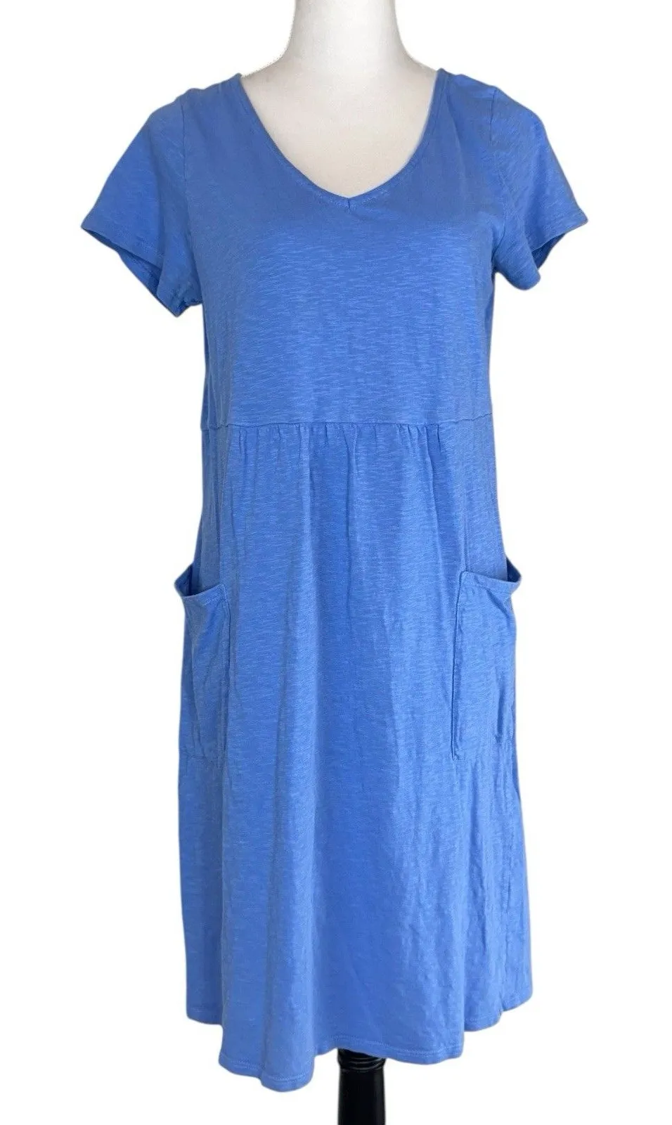 J. Jill Knit V Neck Dress Size S Blue Pockets Lagenlook Boho Short Sleeve Cotton - $25 - From LetsShop
