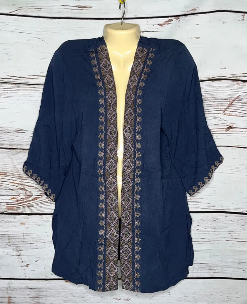 J. Jill O/S One Size Blue - Tan, Pink & Brown Embroidered Cardigan. Open Front, No Closures. Side Sl... Show more
