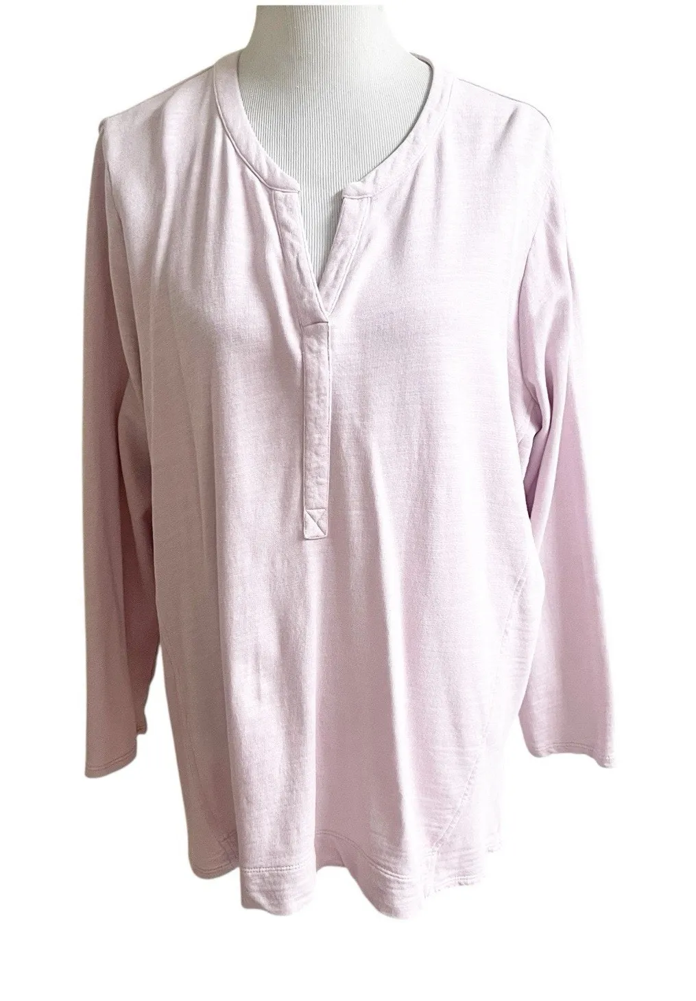 The J. Jill Organic Cotton Henley Neck Sweater in Pink is a stylish and comfortable option for a relaxed beachy casual look. This sweater features a V-neckline, long sleeves with raglan sleeves, and a tight-knit cotton fabric that is perfect for all seasons. The XL size and relaxed fit make it a versatile piece that can be worn in winter, fall, or spring. With its classic and breathable design, this sweater from J. Jill is a perfect addition to any woman's wardrobe. Excellent used condition no holes or stains 20” pit to pit ; 25” length 100% organic cotton