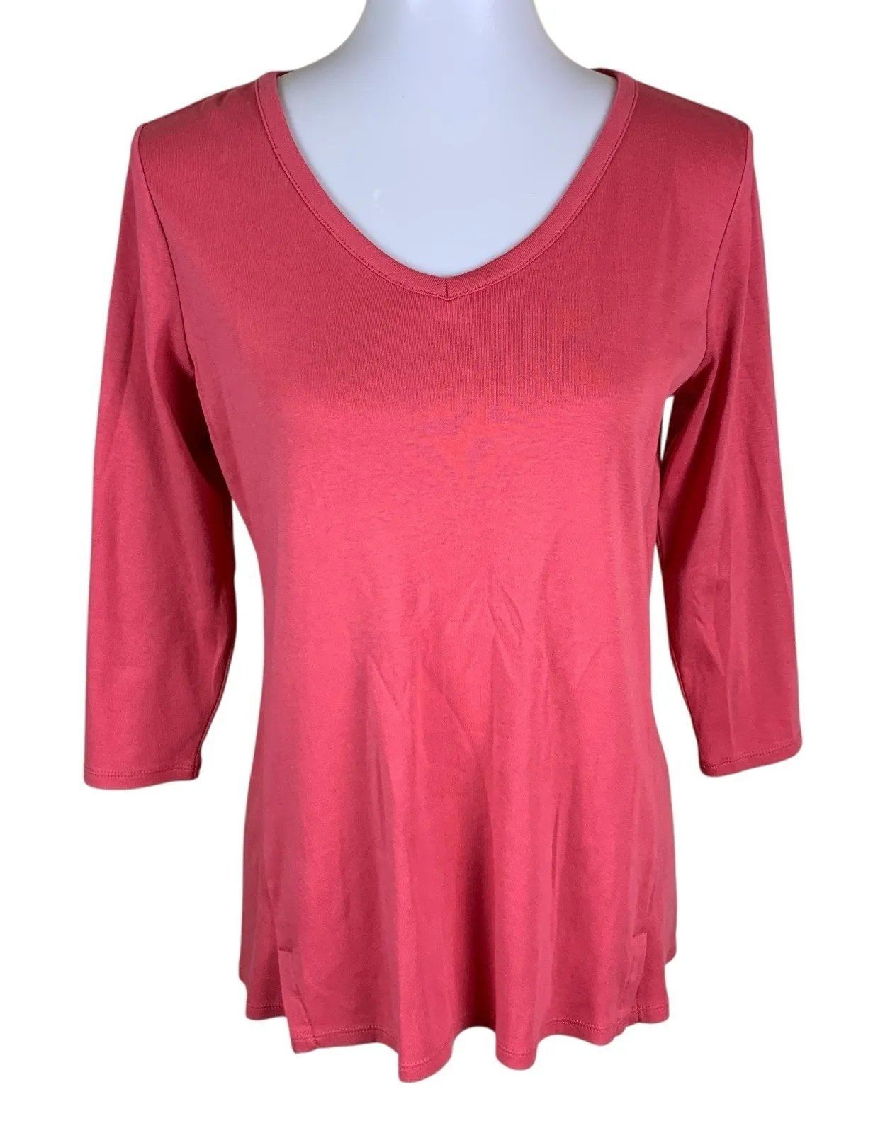 J. Jill Pima Cotton Three Quarter Sleeve V Neck Tee Coral Pink Small - $15 - From Rodica